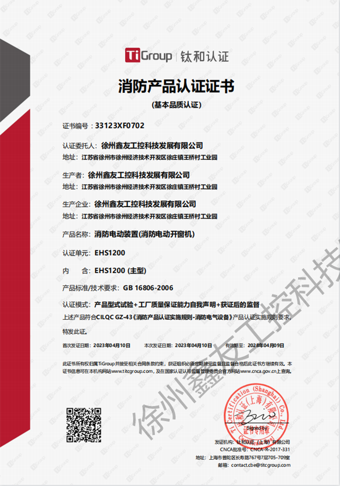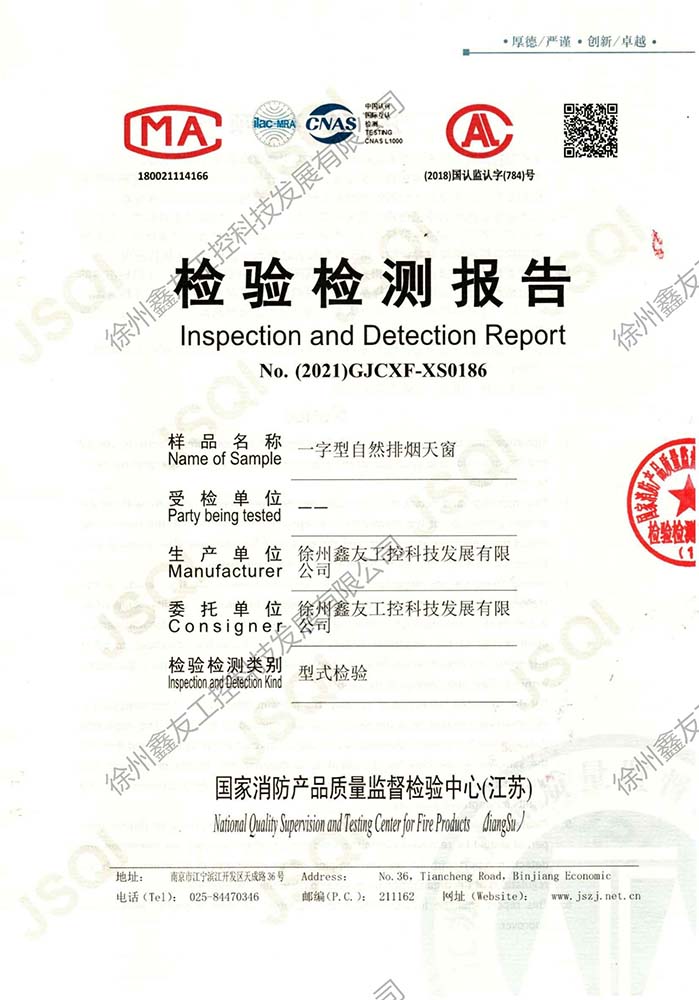徐州鑫友工控科技發(fā)展有限公司成立于2008年,占地31600平方米,全資子公司:江蘇良紫工程科技有限公司,旗下 有“鑫友”及“MASTER.W主人窗控”兩個品牌系列,公司全面貫徹執(zhí)行IS09001:2015質(zhì)量管理體系標(biāo)準(zhǔn),產(chǎn)品順利通過歐盟CE認證和中國***消防電子產(chǎn)品認證,通過可燃性粉塵環(huán)境下、爆炸性環(huán)境下防爆合格產(chǎn)品檢驗。排煙天窗整窗通過***消防產(chǎn)品質(zhì)量監(jiān)督檢驗中心檢測。先后獲得多項******及榮譽證書。集研發(fā)、加工、生產(chǎn)、制造、銷售、安裝及售后于一體,是一家高起點、研發(fā)能力強的專業(yè)智能化***技術(shù)企業(yè)。